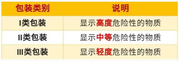 按照危險(xiǎn)程度,對(duì)第1類(lèi)、第2類(lèi)、第7類(lèi)、第5類(lèi)的5、2項(xiàng)、第6類(lèi)的6、2項(xiàng)以及第4類(lèi)的4、1項(xiàng)自反應(yīng)物質(zhì)以外的其他各類(lèi)危險(xiǎn)貨物,可劃分為I類(lèi)、II類(lèi)、III類(lèi)三個(gè)包裝類(lèi)別: