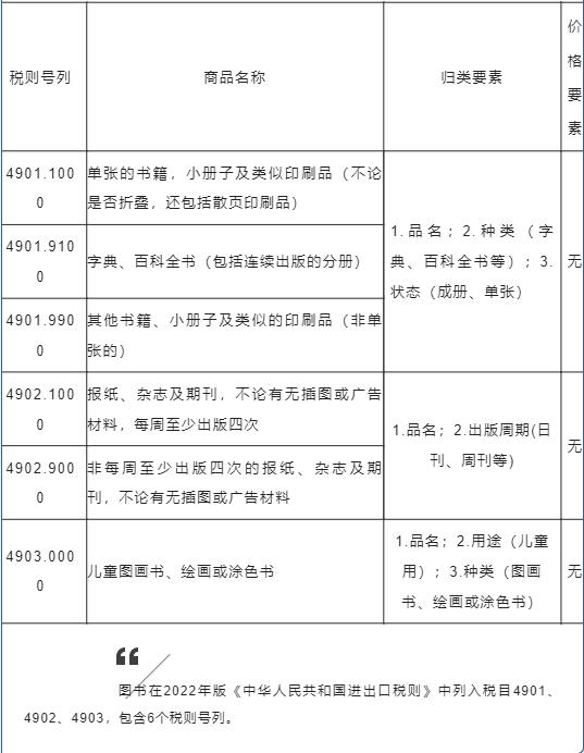 根據《中華人民共和國海關進出口商品規范申報目錄及釋義(2022)》的規定,企業申報進口圖書應明確申報以下要素:(如下表)