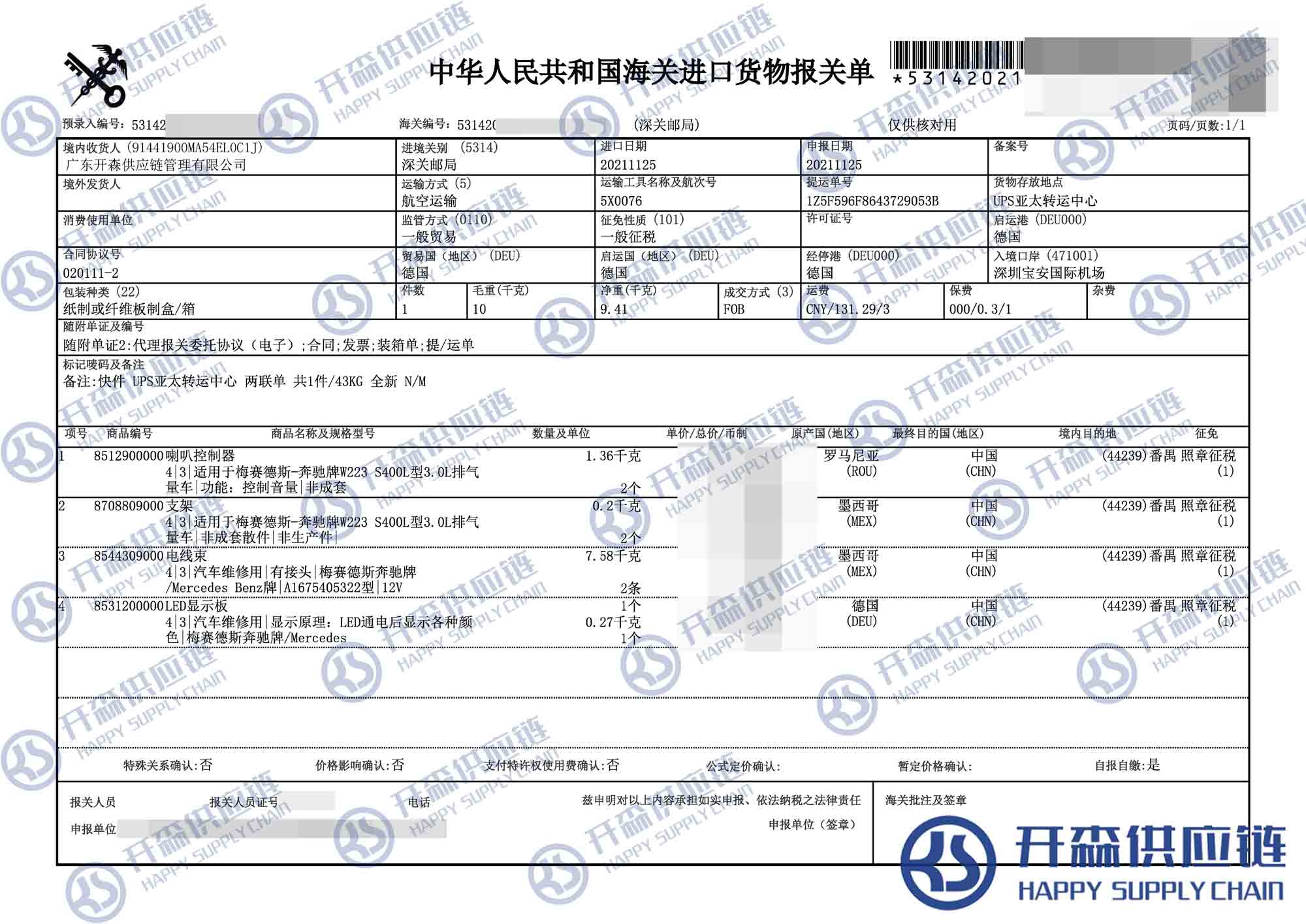 【本文結語】 上述就是喇叭控制器汽車配件進口報關代理案例【進口案例】的全部內(nèi)容,希望能對您有所幫助,如有汽車配件進口報關上任何疑問及問題可隨時在線聯(lián)系我們或撥打 18002611553,開森供應鏈擁有豐富的汽車配件進口報關操作經(jīng)驗及案例,10余年進口經(jīng)驗為您所用,各類進口疑難都能為您一一解答及協(xié)助快速處理解決!