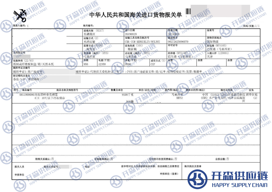 一、馬來西亞冷凍榴蓮進口報關(guān)代理案例詳情